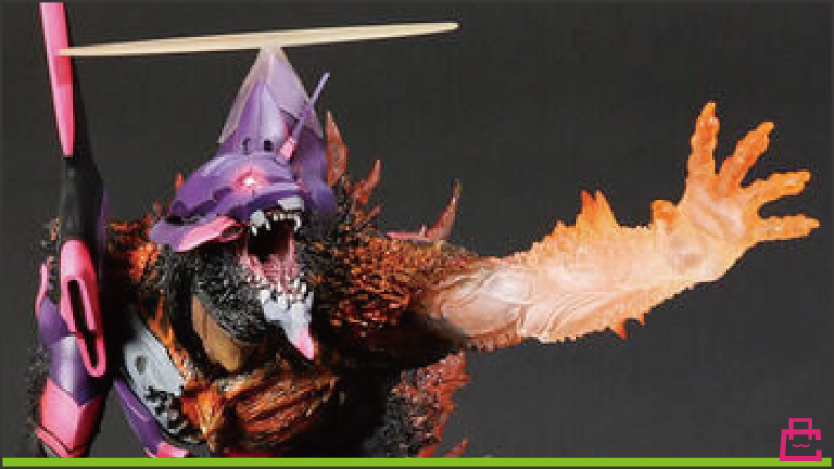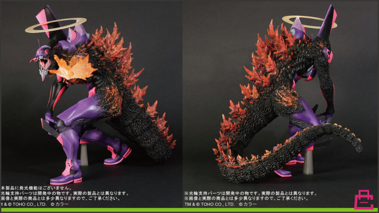 「もしエヴァンゲリオン初号機にG細胞を投入したら?」というオリジナル設定で作られたフィギュアの最新作。ゴジラと融合しているというか、乗っ取られそうというか。エンジェルヘイロー(天使の輪)もあるので覚醒エヴァの要素もありますね。
