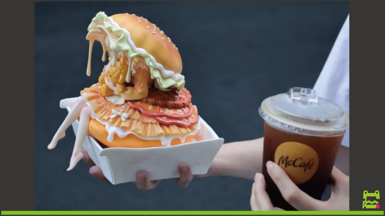 人魚がでっかい真珠貝の中にいる絵面ってあるじゃないですか。バーガーのバンズ(上下のパン)をアレに見立てたかのようなこのフィギュア、とてもかわいい。レタスやチーズがフリル状にとろけてフェティッシュ感をアップさせている。