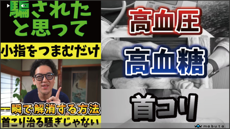「小指をつまむだけで、高血圧、高血糖、首コリ、一瞬で解消!」