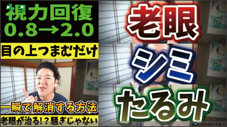 「目の上つまむだけで、老眼、シミ、たるみ、一瞬で解消!」