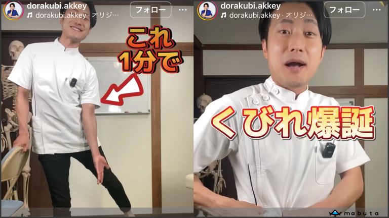 こちらダイエット整体師藤田さん。他にも「おでこを揉むだけで白髪が一瞬で解消!」という一瞬パターンなどがある。